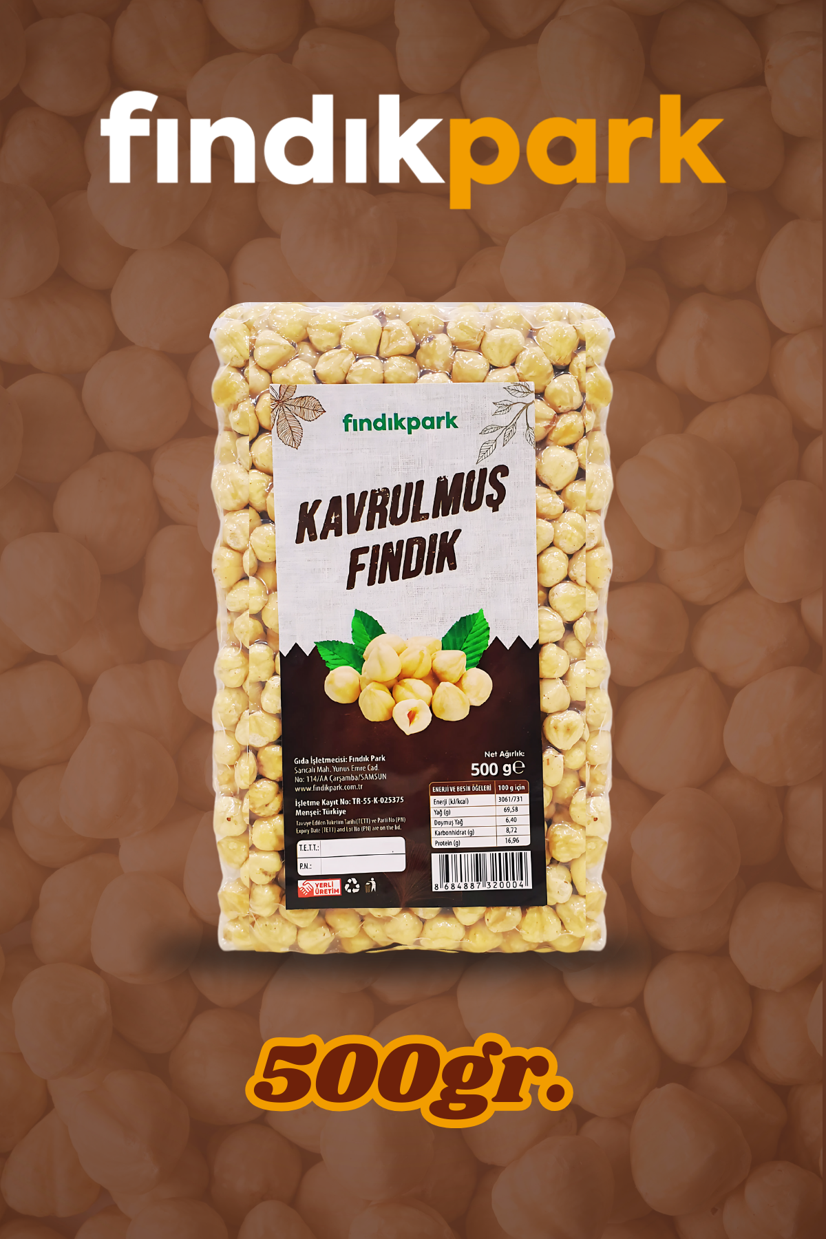 Giresun taze kavrulmuş iç fındık, kavrulmuş iç fındık 500 g, FındıkPark iç fındık, katkısız kavrulmuş fındık, doğal fındık atıştırmalık